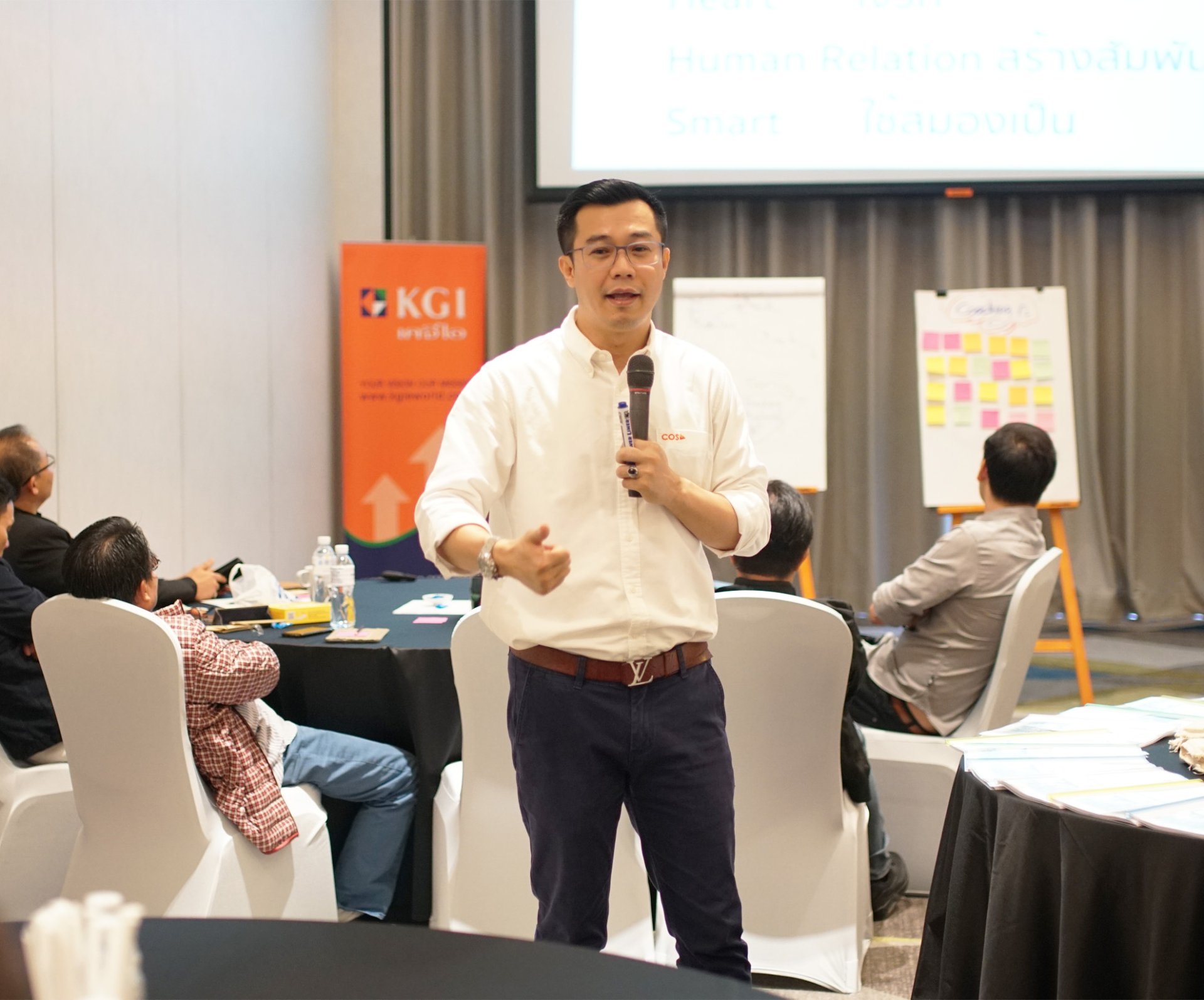 “ปรับความคิดพิชิตเป้าหมาย” เป็นการหลอมรวมกระบวนการฝึกอบรมกับกระบวนการโค้ชเข้าด้วยกัน คือ การอบรมบรรยายแบบมีส่วนร่วม ด้วยการตั้งคำถามที่ทรงพลังจากกระบวนการโค้ชชิ่ง และการลงมือฝึกปฏิบัติ ลองทำจริง เพื่อให้เกิดความพร้อมในการเปลี่ยนแปลงตนเอง มองเห็นเป้าหมายชัดเจนและสามารถพาตนเองไปสู่ความสำเร็จทั้งของตนเองและองค์กรได้